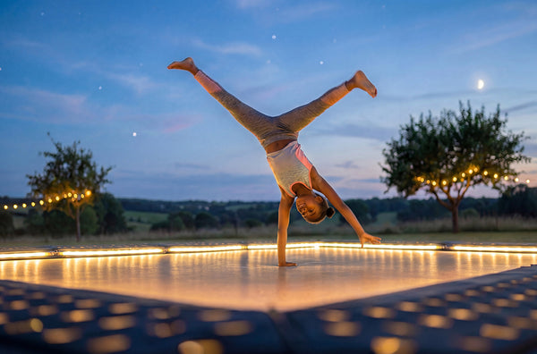Our super safe, ground level trampoline fits beautifully in your garden, choose from rectangle or round to suit your space